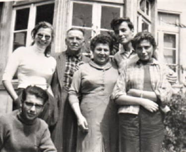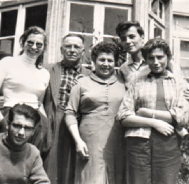 1957. A los 19 años con sus padres y hermanas y hermano.