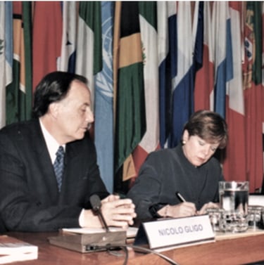 2001. CEPAL, Presentación de su libro “La dimensión ambiental en el desarrollo de América Latina”. Junto a la Secretaria Ejecutiva de la CEPAL, Alicia Bárcena.